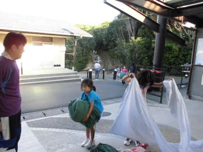 そして,次々と寝具を持って降りてきます。最終日なので,片づけやそうじで忙しいのですが,大丈夫そうです。