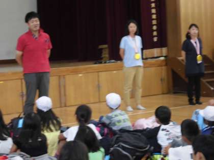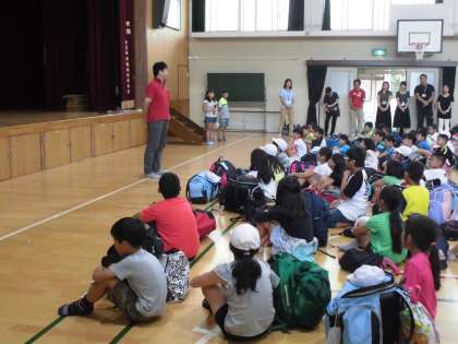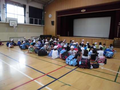 バスの中では,DVDに夢中になる子もいれば,ぐっすり休む子もいましたが,気分が悪くなる子もほとんどおらず,ほぼ予定の時刻に到着し,解散式を行いました。