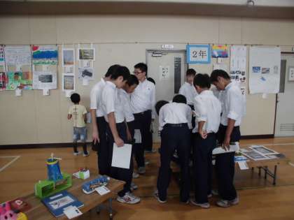 早速七条中学の2年生が鑑賞に来てくれました。小中連携の取組の一つです。小学生の作品を見て,様々な感想をプリントに書き込んでいました。後日感想が小学校に届くそうですので,子どもたちにも紹介したいと思います。