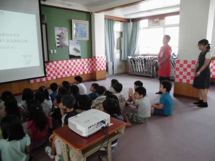 本日2・3校時,ニチレイの方が3名来てくださって,2年生に向けて出前授業をしてくださいました。