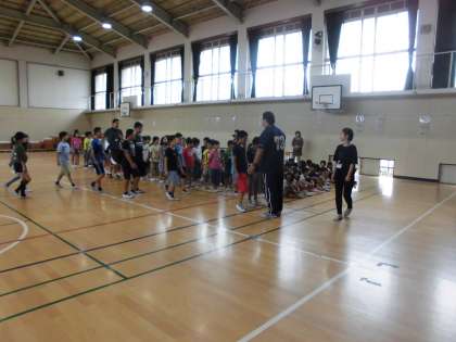 安全が確認されると,体育館に集まります。