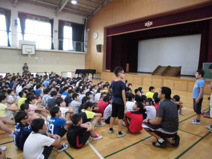 訓練後,ふり返りを行いました。子どもたちはしっかり行動できていましたが,不十分なところも見つかりました。訓練を行ったからこそ見つかったことです。