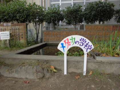 また東出管理用務員さんが,「メダカの学校」の立て看板や