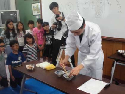 9月29日(木)の3・4校時,京都新聞社の「ソフィアがやってきた」という企画で,京都の料亭『平八』の料理人の方が5年生にお話を聞かせてくださいました。