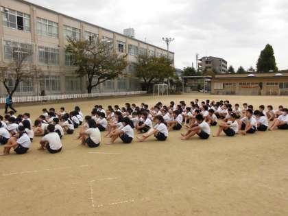 さて,高学年の組体操も,最終のリハーサルを行うことができました。終わった後の様子です。自信に満ちた表情に見えます。
