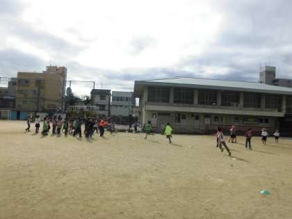 今回は,クラスごとにリレーをするのですが,運動委員会チームも一緒に走ります。第1回目は3年2組で行いました。