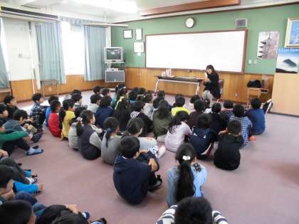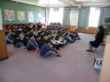 下の写真は,4年生に向けた「お話会」の様子です。夢中になって聞き入っています。