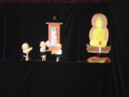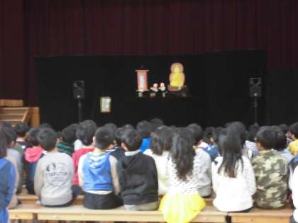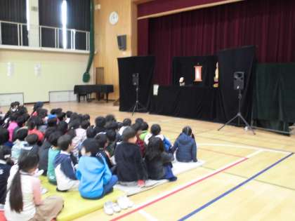 1〜3年,さくら学級は,3校時に体育館で,人形劇を鑑賞しました。人形劇サークル「さんりんしゃ」の皆さんがお越しになり,公演をしてくださいました。