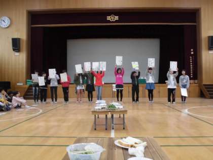 「食べ物クイズ」「ブラックボックス」「豆つかみ大会」「あてっこグラム」というコーナーで,楽しみながら食べ物や食について学びました。