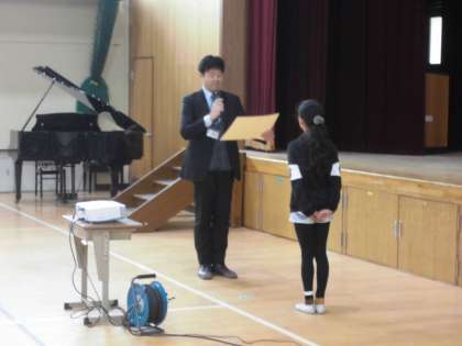 表彰状の紹介と「冬休みのくらし」についてのお話もありました。
