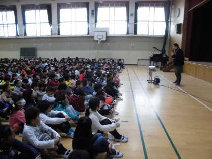 朝会では「西高瀬川の注意」「公園での遊び方」についても伝えられました。