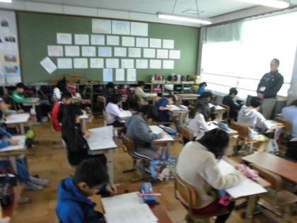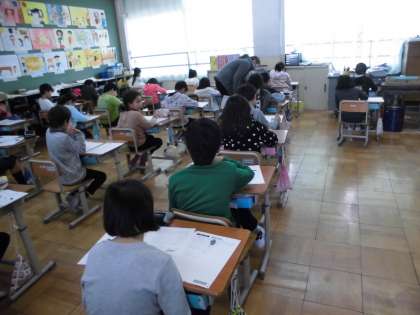 さて,3年生以上はプレジョイント・ジョイントプログラムのテストに取り組んでいます。3年生にとっては初めての経験です。問題用紙と解答用紙が別々になっているのも初めてです。戸惑いながらも一生懸命問題を解いています。