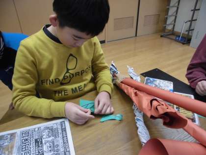下京渉成小学校へいって、巨匠展で展示される作品制作に行ってきました。
