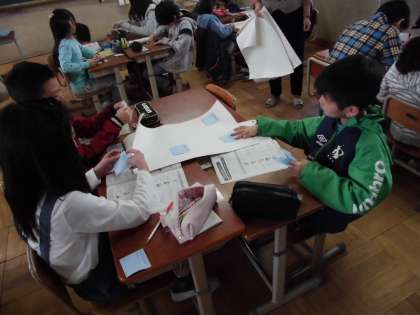 本日の878学習では,エコライフチャレンジの学習を行いました。冬休みの生活を振り返って,エコライフについてできたこと,できなかったことを班で交流していきました。そして,話し合いをして,エコライフのためのチャレンジ目標を決めました。「ごみを分別する」「電気をつけっぱなしにしない」「水を出したままにしない」など,いろいろな目標が出ました。目標が達成できるように,頑張って取り組んでほしいと思います。