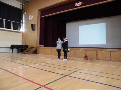 図書委員会からは,かぎ型ろう下に設置した読書コーナーの名前が発表されました。「くつろぎの本コーナー」です。くつろぎながらも,気軽に本に親しめる場所になればいいですね。