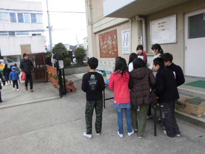 入学予定の子どもたちにとっては,就学時健康診断に続いて2回目の小学校です。前回ほどの緊張感はないようでした。それは,受付で待ち構えていた5年生児童のおかげかもしれません。