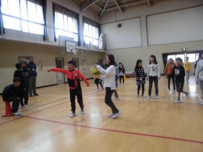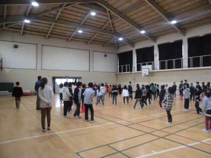 体育館は熱気に包まれ,楽しそうに競い合っています。