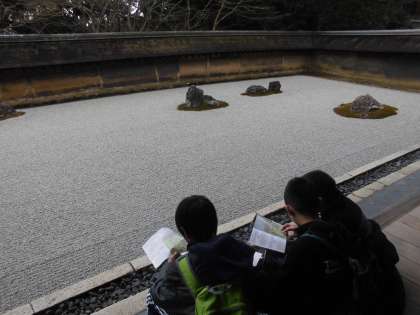 17日(金)に京都発見ラリーを行いました。京都市内にある世界遺産を市バスで巡りました。総合的な学習の時間で,自分達で行きたい場所を選択し,計画も自分達で立てました。途中,バスを乗り間違えたり,なかなか目的地にたどりつかずに困ったこともあったようですが,みんなで協力し全員無事に帰ってくることができました。「龍安寺がすごかった。」「金閣寺がすごくきれいだった。」と早速世界遺産の魅力に迫ることができた様子でした。とてもよい経験になった1日でした。