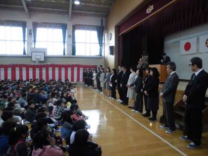 続いて,平成29年度の学校教育目標を,学校長を中心に,教職員全員で子どもたちに紹介しました。