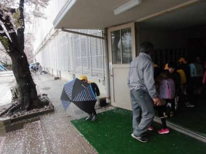 あいにくの雨となってしまいましたが,期待に胸を躍らせながら,子どもたちは元気に登校しています。