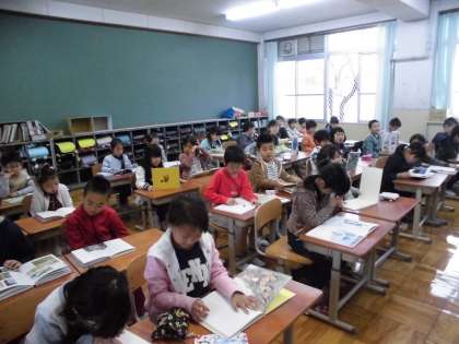 どの教室もとても静かに読書をしています。