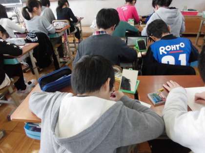 6年生は,図工で自分の顔を描いています。鏡で自分の顔をよく見て,丁寧にスケッチしています。