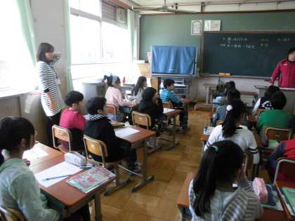 5年生は理科の学習で,協力指導の先生とともに学習を始まています。
