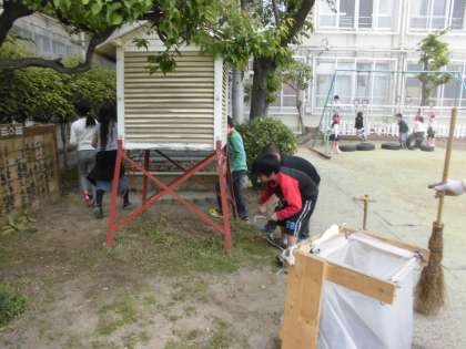 「ロング昼休み」でたくさんの子どもたちが楽しそうに遊んでいましたが,そんな中,管理用務員さんのお手伝いで草ぬきをしている子どもたちもいました。