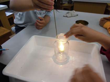 ちょうど「酸素の中でろうそくの火を燃やすとどうなるか」を調べているところです。