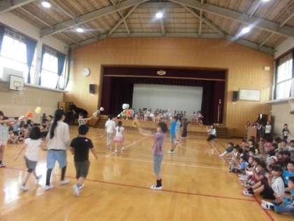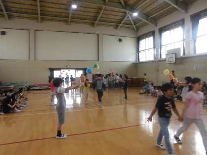 6年生のお兄さん,お姉さんと手をつなぎ,うれしそうに歩いています。