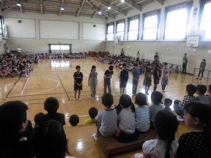 初めに,今年度児童会本部のメンバーが自己紹介しました。