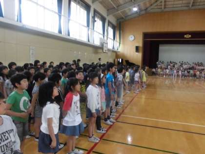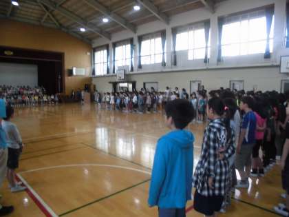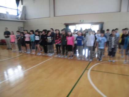 クイズやゲームが終わり,2年生から6年生で歓迎の歌『やあ!!』を歌いました。