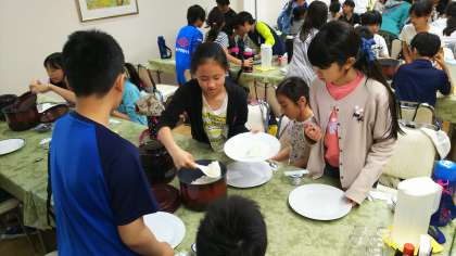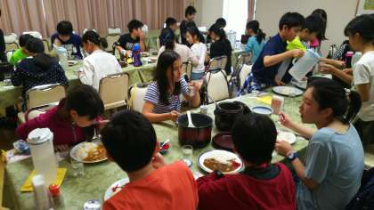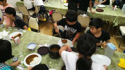 カレーライスですが,グループごとに配膳する熱々のシステムです。