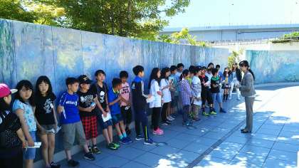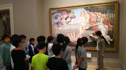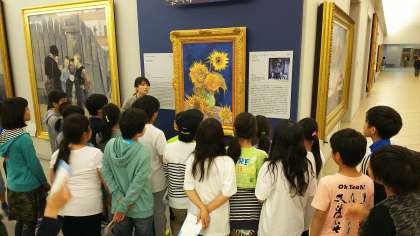 クラスごとにガイドを受けながら見どころを鑑賞しています。