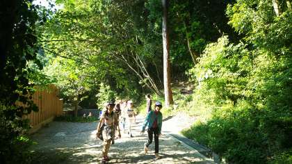 次はうどん打ち体験です。歩いて「中野うどん学校」へ向かいます。