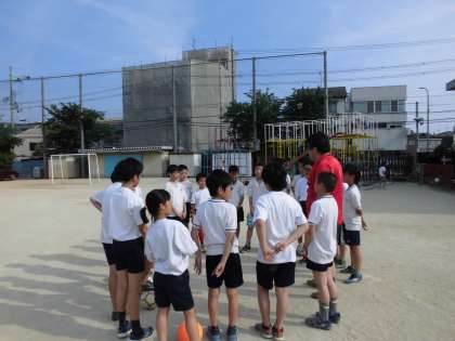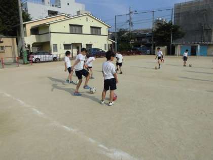 サッカー部は6年生が中心のメンバーです。うれしそうにボールを蹴っています。