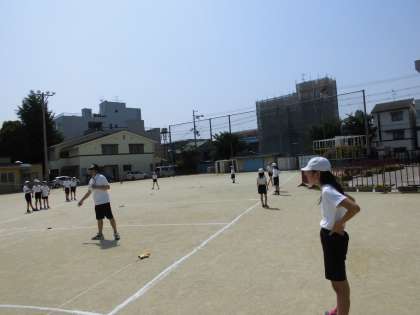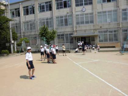 5月29日(月)は,運動場でソフトボール投げをしていました。