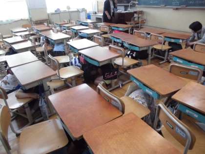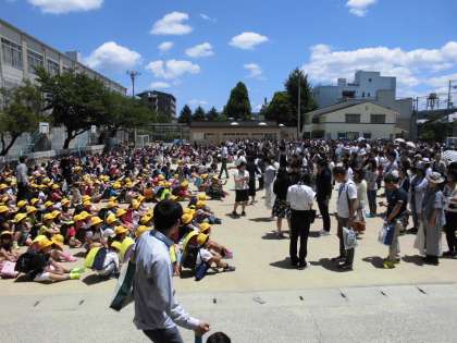 日曜参観の4校時は,大地震を想定した避難訓練と,その後に引き渡し訓練を行いました。