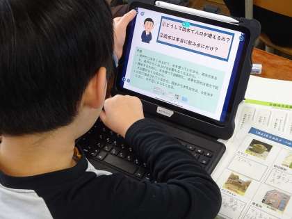 学習を通して大切だと考えたキーワードを、ロイロノートを使って整理して、一人一人の気づきや発見を大切に、学んだことを新聞にまとめていく予定です。先人の働きや地域の発展のための苦心や努力したことなどについて、じっくりと考えて、まとめにつなげていきたいと考えています。