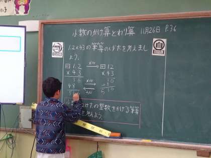 これまで学習した整数×整数の筆算の仕方を比べながら、確かな理解につながるように学習を進めていきたいと考えています。