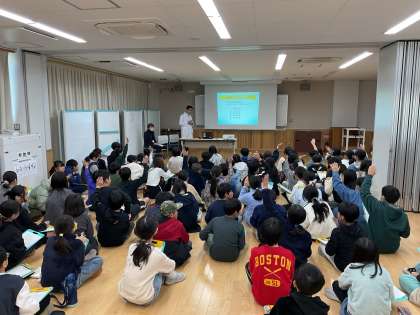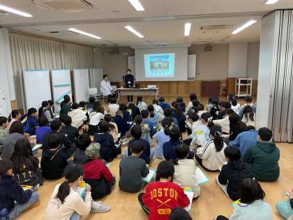 子どもたちにとって「がん」に対する理解は様々だと思います。今回の授業では、がんができる仕組みや、実際にがんを経験された方からの体験談を教えていただきました。がんは2人に1人がなるということを知った子どもたちは、とても驚いている様子でした。学習で教えてもらったように、すべてを防ぐのは難しいですが、規則正しい生活を送ることで健康な体を作ることはできます。これからの日常生活に生かせる貴重な学習となりました。
