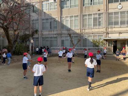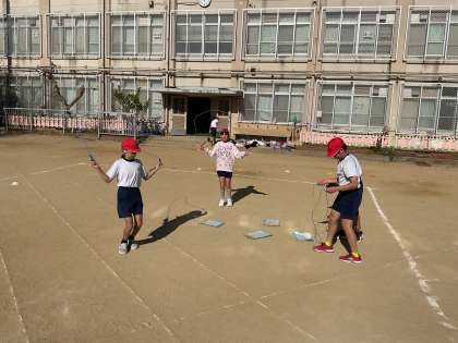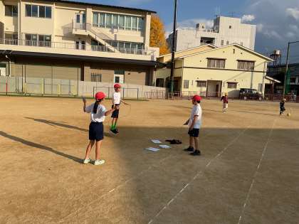 体育科では、「なわとび/ジョギング」の学習を始めました。なわとびでは、できる技では回数に挑戦したり、できない技をできるようにするために挑戦したりしています。グループで見合いながら、アドバイスをしている様子も見られました。縄跳びは全身のいろいろな筋肉を使う全身運動です。休み時間にも取り組んでいる姿もありました!!