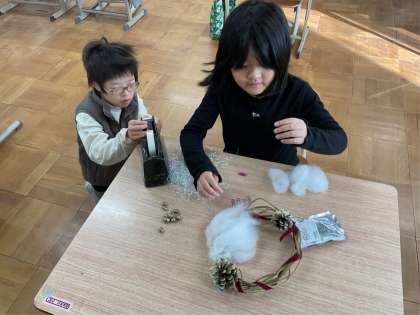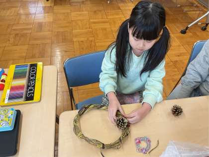 さつまいものつるで クリスマスリースを さくせいしました。