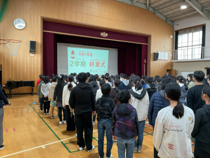 2学期の最終日を迎えました。子どもたちは通知票を受け取り、これまでの学習や生活を振り返りながら、自分の頑張ったことや成長したところを確認しました。また、三学期に向けて「もっとこうしたい」「ここを頑張ろう」という課題も考えました。
