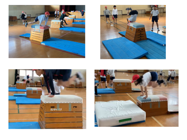 体育の「とび箱運動」の学習を終えました。自分の技を動画に撮って確認したり、友達同士で「もっと手をつく場所を前にしたらいいよ」などとアドバイスを伝え合ったりしながら、上手になる方法を一生懸命に探していました。挑戦する姿がたくさん見られ、自分の成長を感じながら学習を進めることができました。