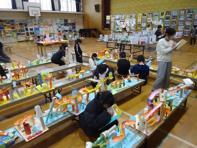 25日(水)と26日(木)の2日間、図工展が本校の体育館で開催されています。6年生は版画とコロコロガーレの作品を出品して展示しています。