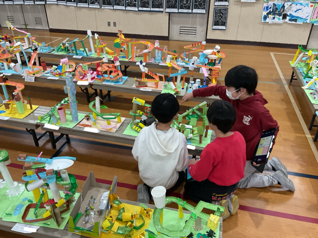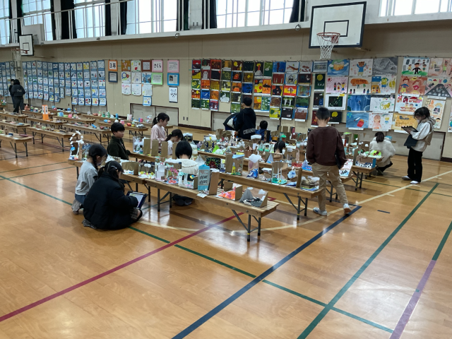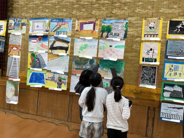 図工作品展の鑑賞を行い、全学年の作品にじっくりと向き合いました。子どもたちは、色の組み合わせや形の工夫など「ここが素敵だな」と思ったところを作品カードに書き、感じたことを言葉にしていました。また、心に残った作品は写真に撮り、自分のお気に入りのポイントを友達と共有する姿も見られました。他学年の表現に触れることで、新しい発想や「自分もこんなふうに作ってみたい」という意欲が高まったようです。創造の世界がさらに広がる、充実した鑑賞の時間になりました。