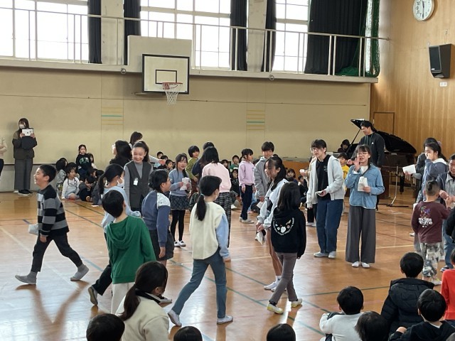 6年生からは、その感謝の気持ちを込めて「旅立ちの日に」の合唱を披露しました。心をそろえて歌う姿には、多くの思いが込められており、会場にいる子どもたちや先生方の胸にも響いた瞬間でした。さらに、日頃の「ありがとう」を伝えるため、6年生一人ひとりが手づくりした“しおり”のプレゼントも渡しました。