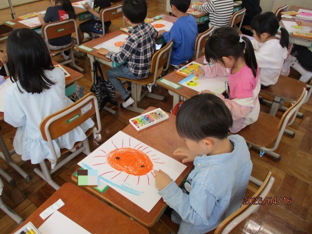 図画工作科で「おひさま」を描きました。