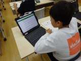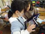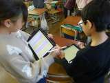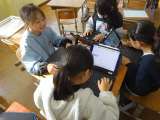 ハナヤ学習「七三から世界へ!広がれエコの輪」では、タブレット端末を使って、テー...